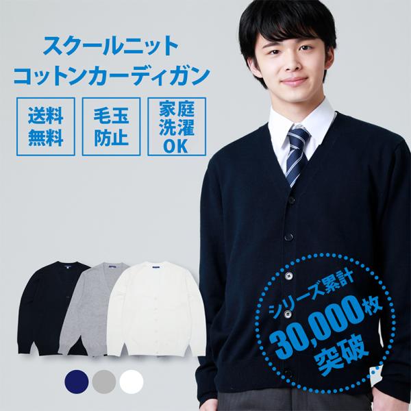 スクール カーディガン 男子 紺 制服カーディガン 無地 綿 コットン