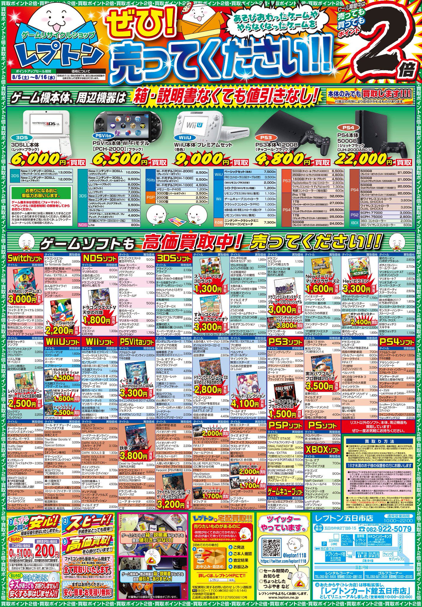 ゲーム チラシ 広告 セール 激安中古販売 超高価買取実施 レプトン