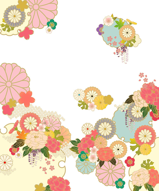 日式花纹 红色 和柄 花柄 日本风格 长袖和服 背景 设计 处理 高清