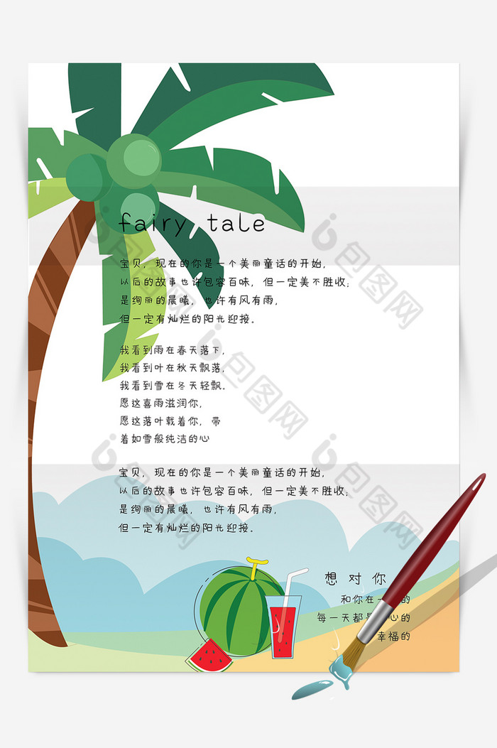 绿色夏日卡通风格信纸 Word文档下载 包图网
