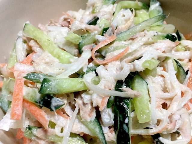 大根 人参 キュウリ 玉ねぎでツナサラダ レシピ 作り方 By