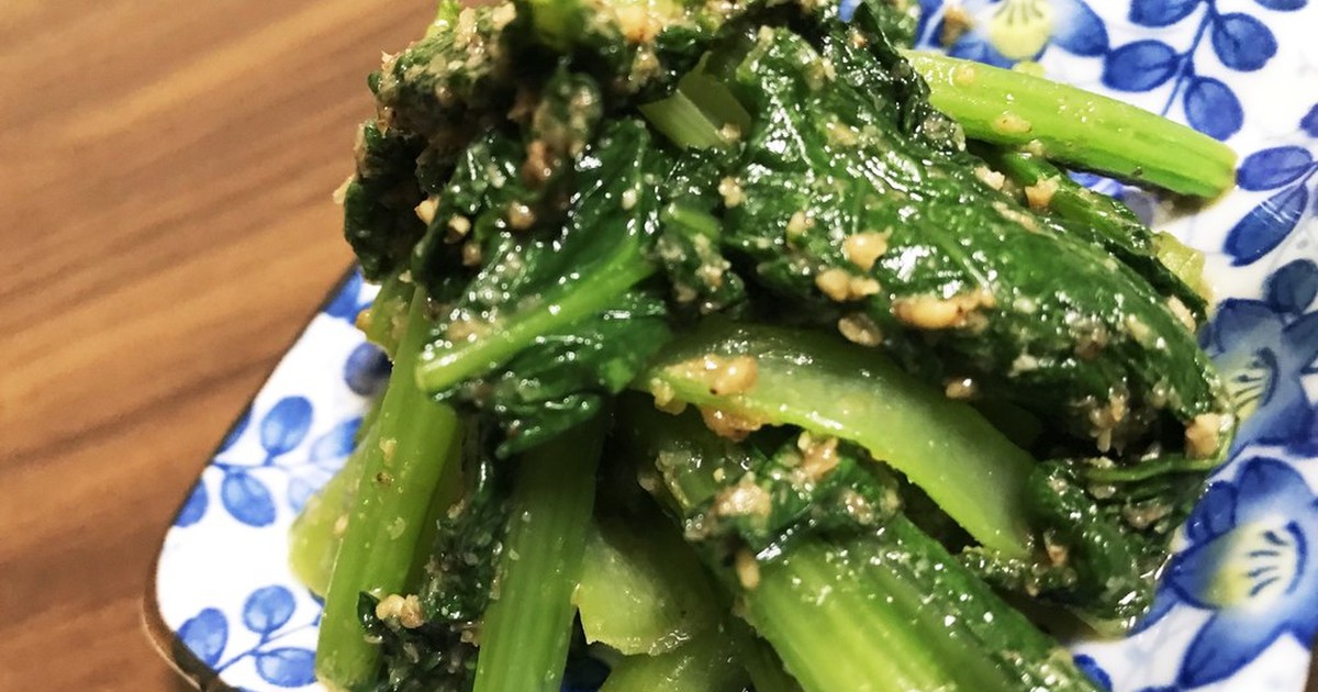 野菜ひとつ ごまたっぷり 小松菜のごま和え 週末の作り置きレシピ