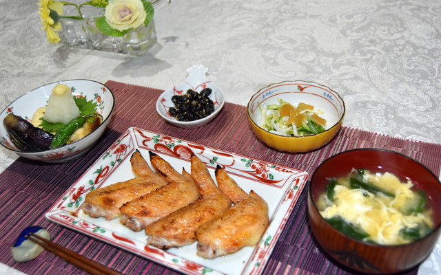 夕飯 こんばんは 献立 手羽先唐揚げ ピリ辛だれ