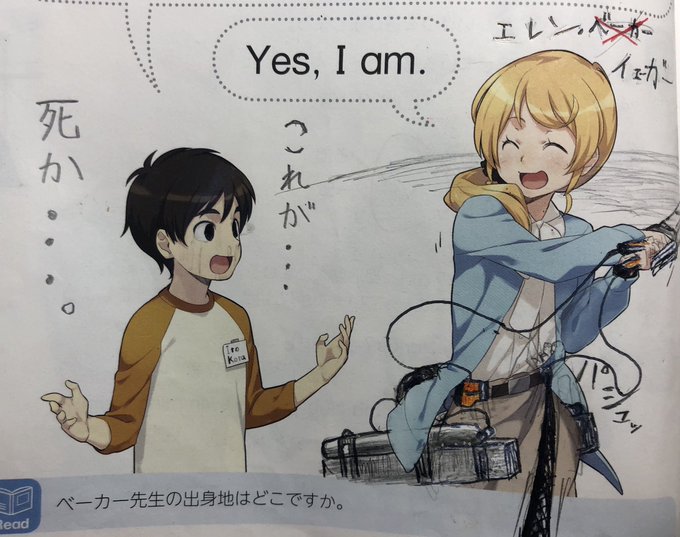 モカ Sur Twitter 英語の教科書に落書きー まさかの膝立ちと